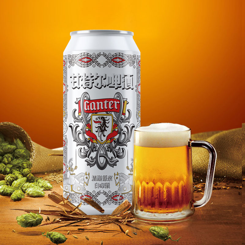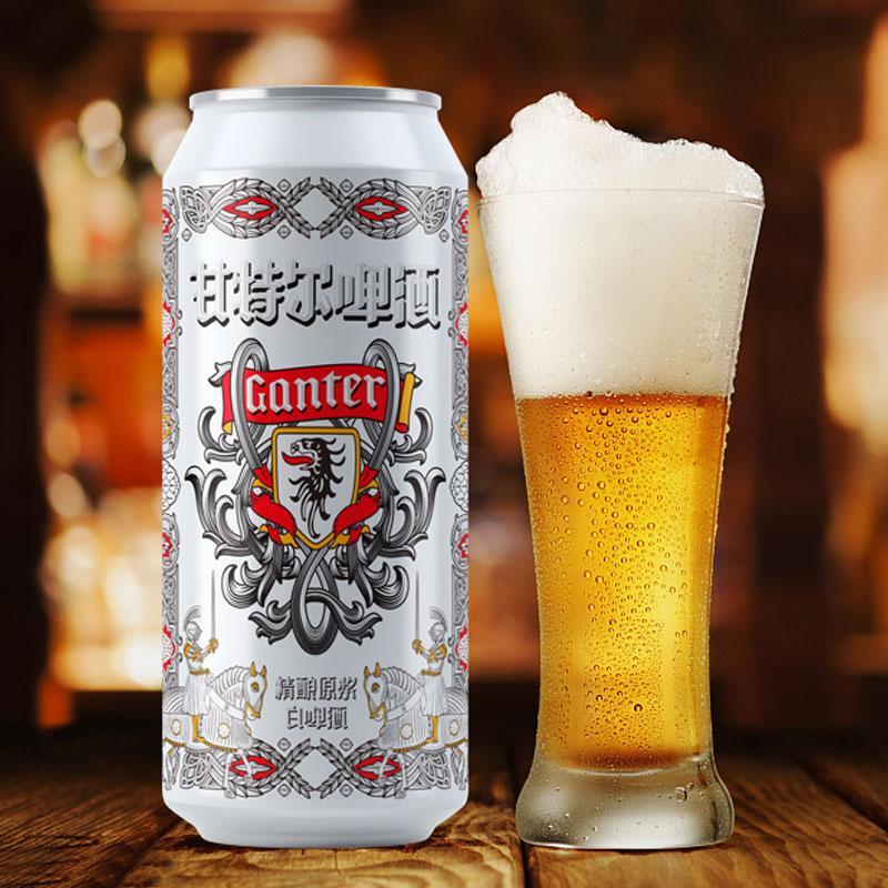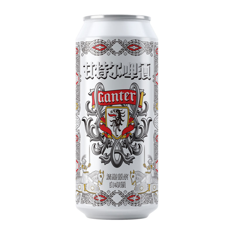 简约白的底色底色设计,印有烫金LOGO更加有层次感,瓶身整体图案以手绘为主,突出麦芽和啤酒花,别具一格。