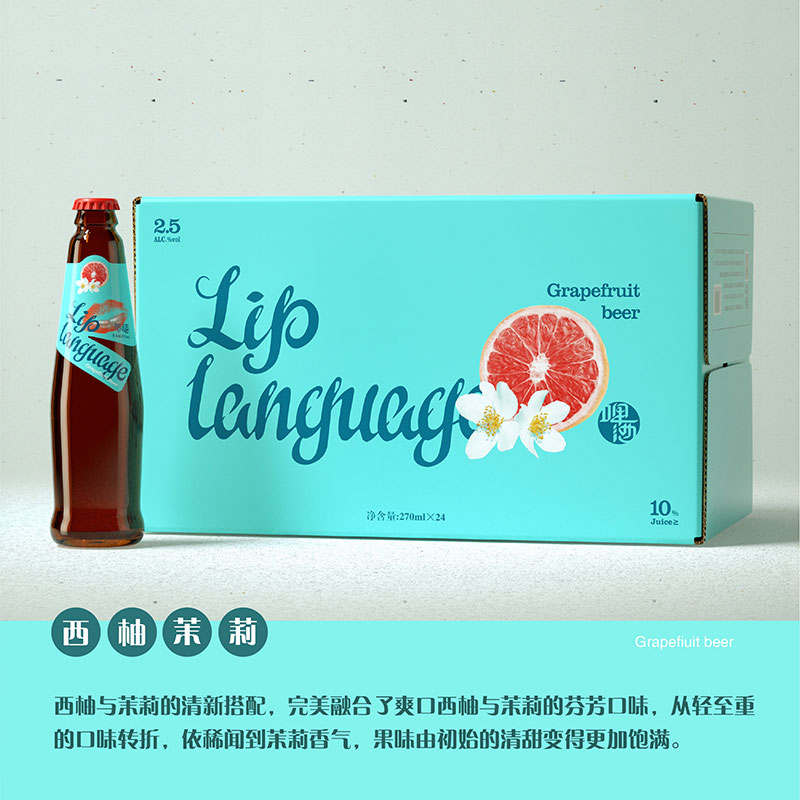 8°P唇语西柚茉莉,果汁含量10%以上,有清新果味和沁人花香,口感柔和宜微醺