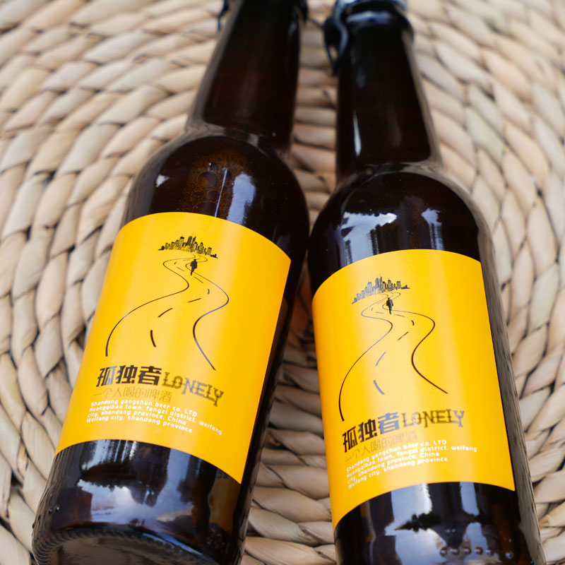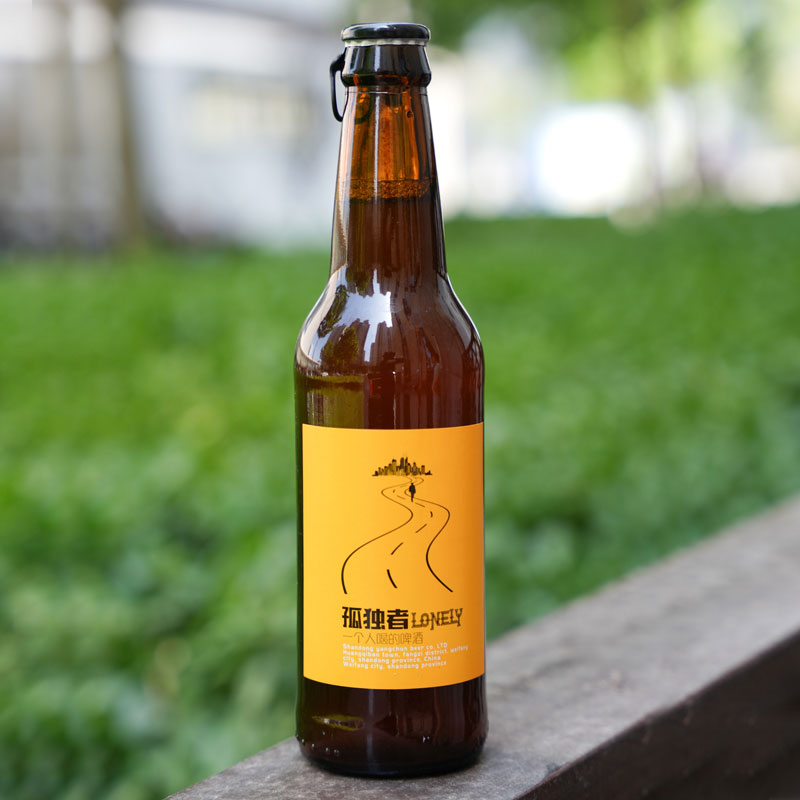 独自行走在城市蜿蜒的道路上,留下孤独的背影,映衬着棕色瓶身,别有意境。
