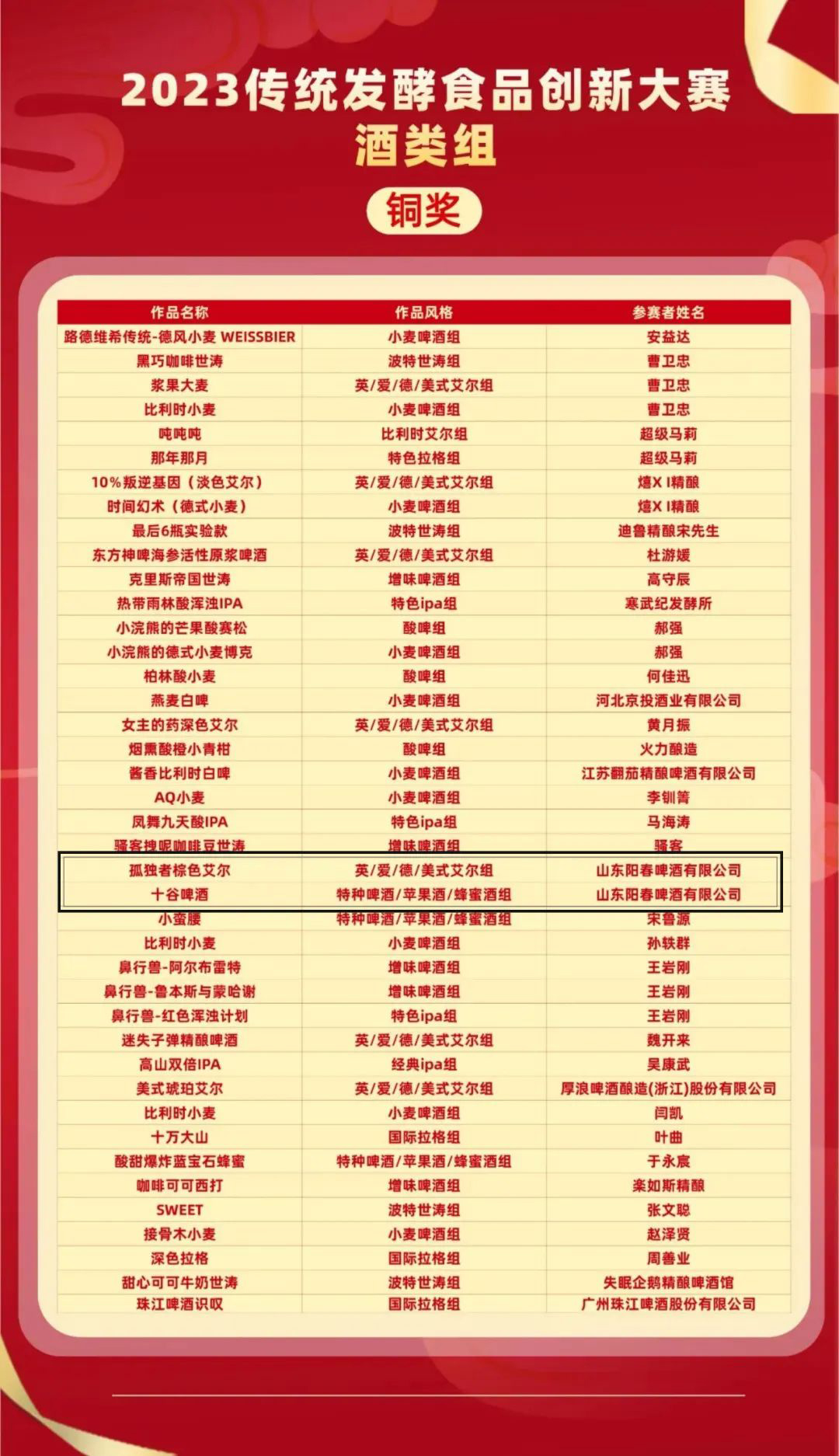 山东星空体育斩获三项荣誉,酒类组银奖—东方醇爽烈性十谷;酒类组铜奖—孤独者棕色艾尔;酒类组铜奖—十谷啤酒。