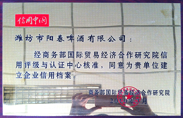 商务部国际贸易经济合作研究院为我单位建立企业信用档案