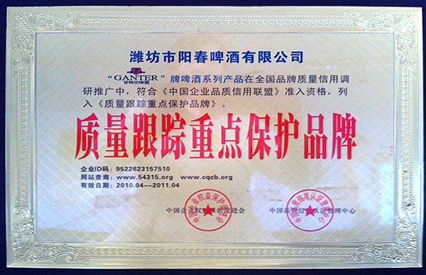 “质量跟踪重点保护品牌”
