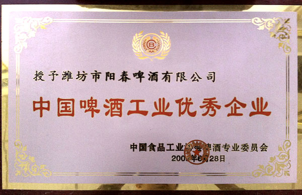 中国食品工业协会啤酒专业委员会“中国啤酒工业优秀企业”