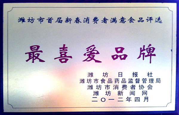 潍坊市首届新春消费节满意食品评选“最喜爱品牌”